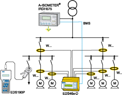 Vigilantes de aislamiento para circuitos de corriente principal en sistemas IT, (Motores, Bombas) – sin rectificadores conectados directamente.